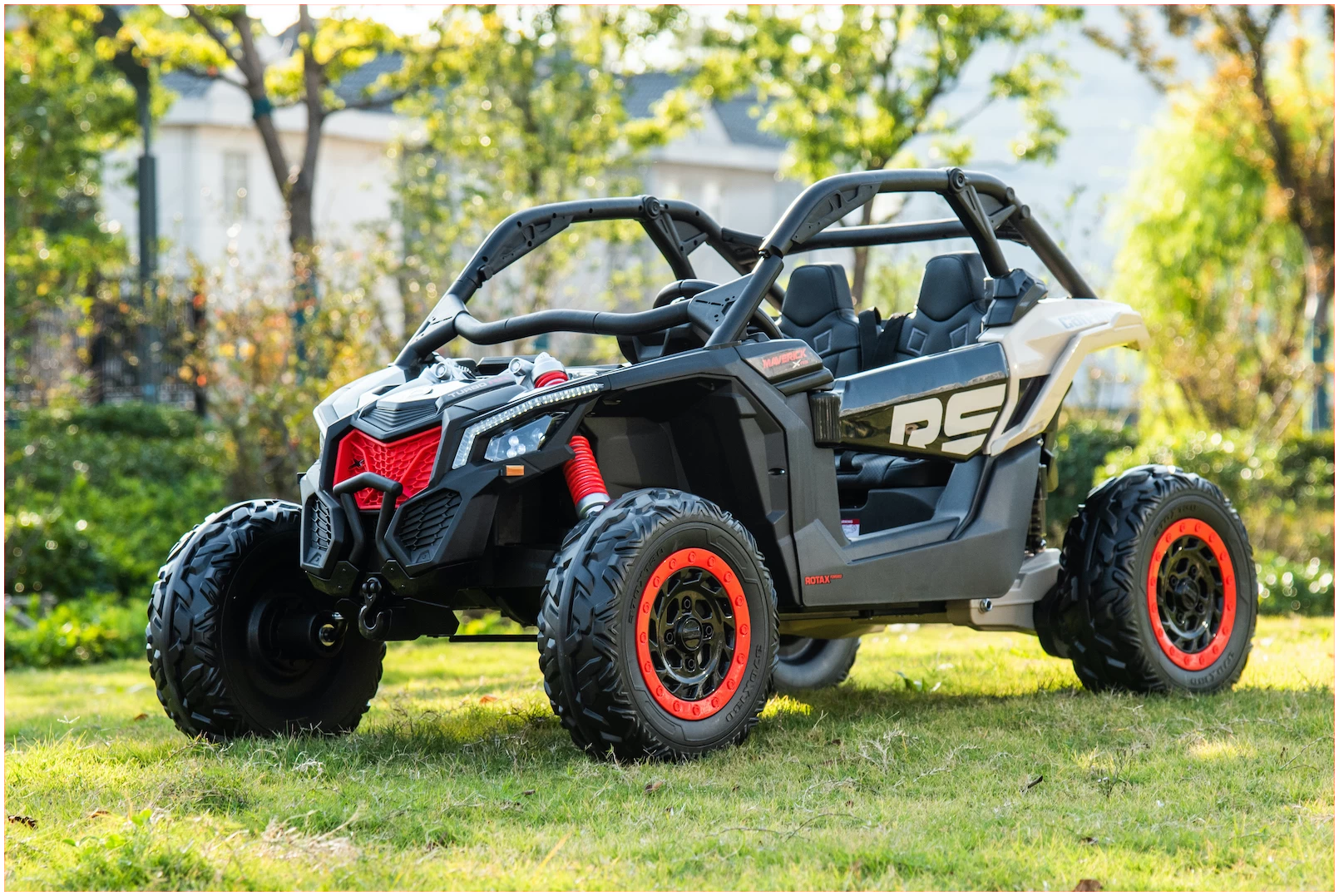 This ride on UTV is made for the rough stuff; with large EVA wheels for traction paired with 4x 200W motors and coil sprung rear suspension, this Ride-on buggy is the most powerful in its class.