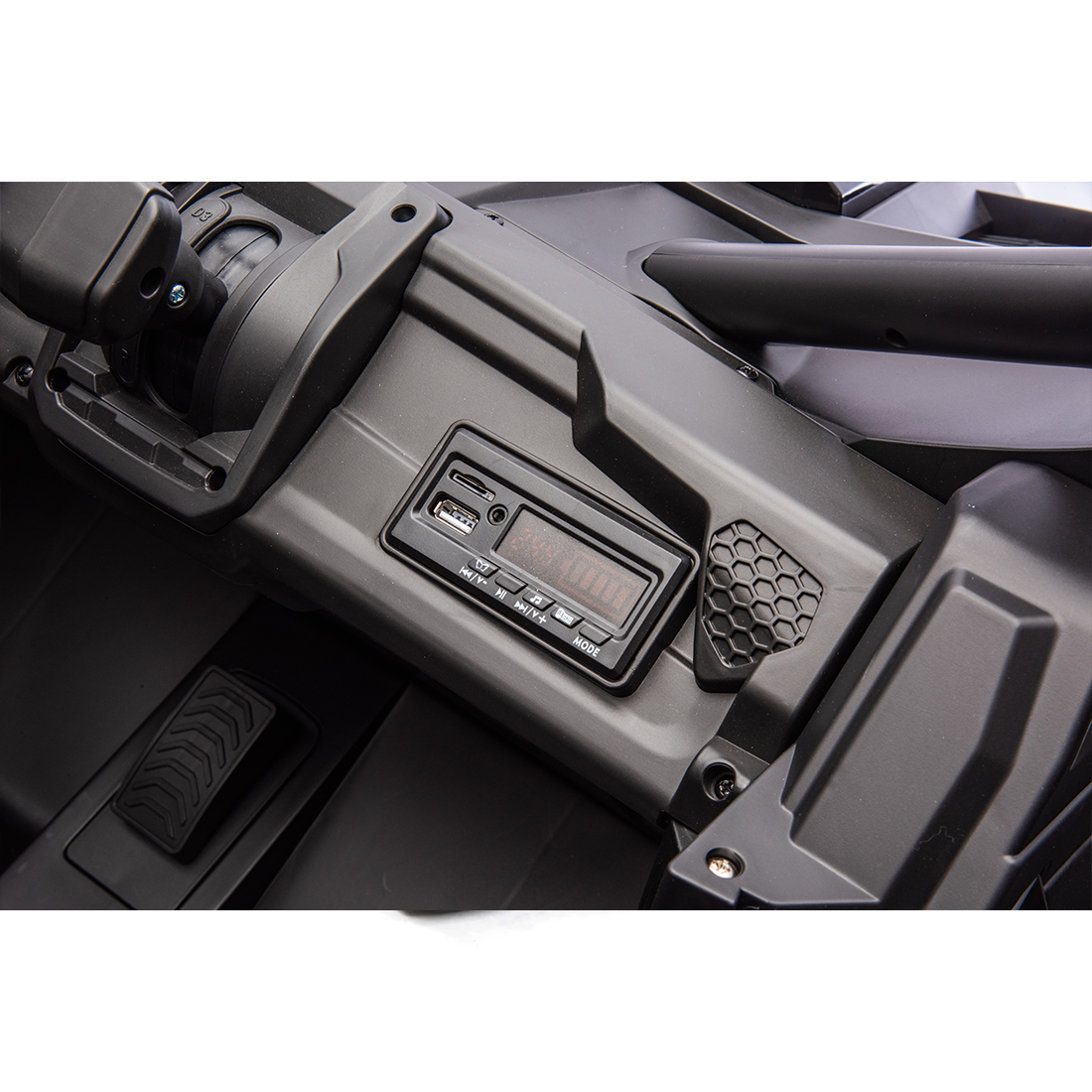 * 2.4G Remote Control and Manual Driving: This two seater buggy electric car kids UTV ride on toy features both manual and remote control modes. Kids can drive the car independently using the foot pedal and steering wheel, while parents can take control using the remote control. The remote also has an emergency brake function for added safety. There is the RC and manual switch on the dashboard.